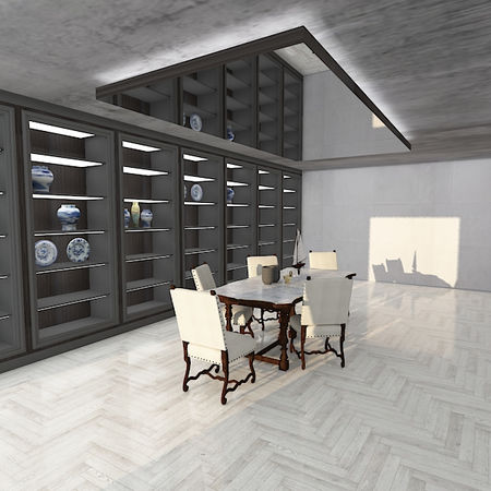 Challenge 7 - Give materiality to a simple pre-modelled room and experiment with natural & artificial lighting. Render at least 2 views of the room.